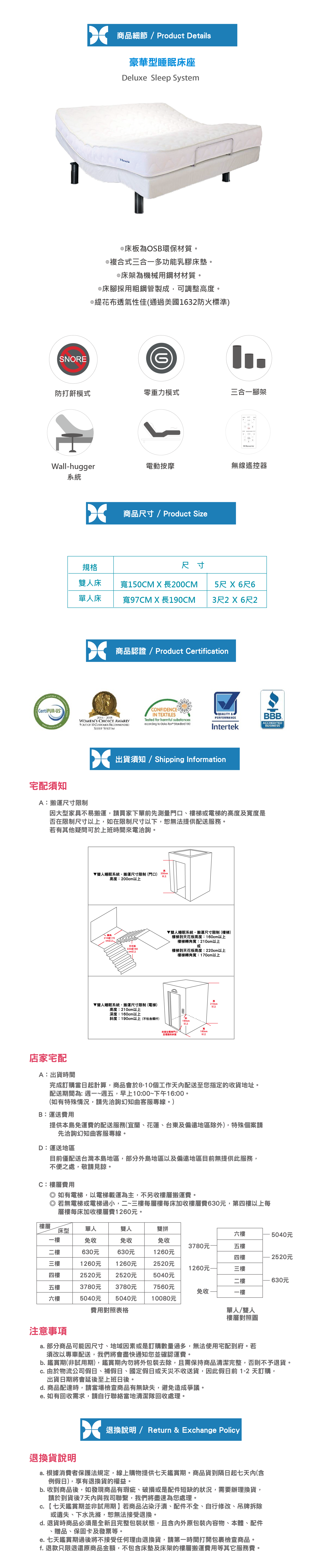 • 店家配送 - 電梯可乘載,或搬至1樓 (送貨需要8-10日)